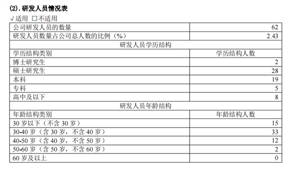 另一方面,2021 年 到2023 年,妙可蓝多的研发投入依次为 4009 万、5123 万、4554 万,分别占营收 0.9%、1.06%、1.12%。与此同时,2023年妙可蓝多有研发人员62人,占公司员工比例为2.43%。