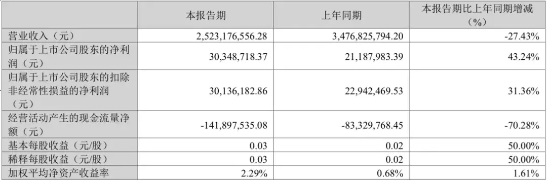另,一季度食品板块实现收入6.79亿元,较上年同期增长30.63%,其中,预制食品收入为5.75亿元,较上年同期增长25.52%,占主营业务的收入占比进一步提升至22.79%。