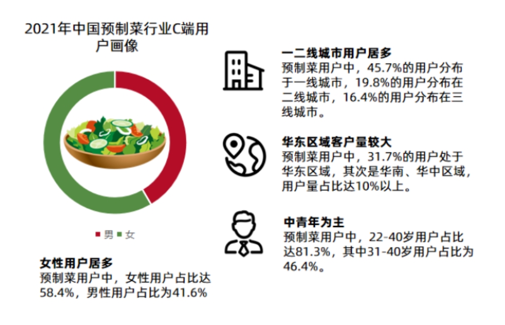 对消费者而言,除了因日常工作繁忙而选择简餐之外,有孩子的双职工家庭也更愿意选择营养相对丰富、干净、处理耗时低的预制菜品。