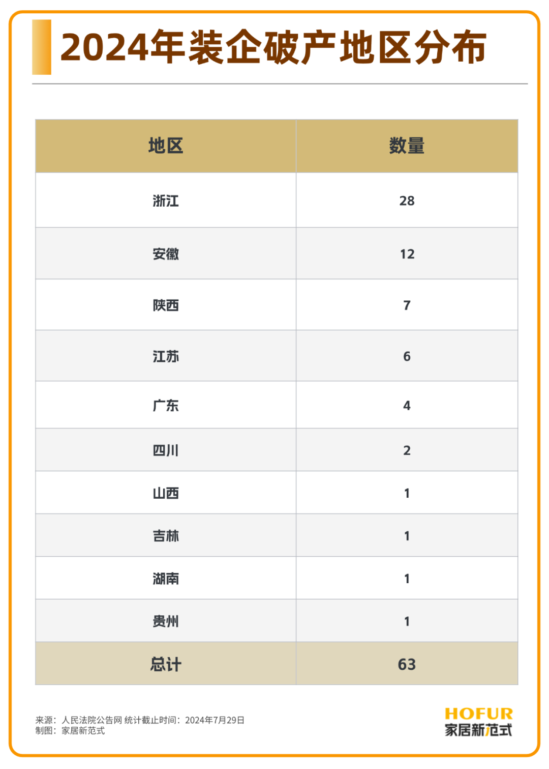 “家装第一股”东易日盛闭店风波不止、洪涛集团宣布全员待岗、龙发装饰成都总店跑路……近期,除了知名装企频频爆雷、装企“业绩”不理想外,家居新范式查询人民法院公告网发现,截至7月29日,已有63家装修企业被发布破产文书,数量远超2022年全年、并渐逼去年总和,行业正经历前所未有的挑战。