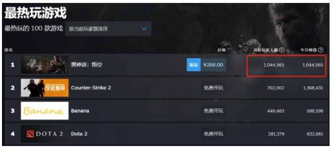 根据游戏平台Steam数据显示,这次不仅是在中国区,在目前全球热销商品中,《黑神话:悟空》都持续霸榜第一名。