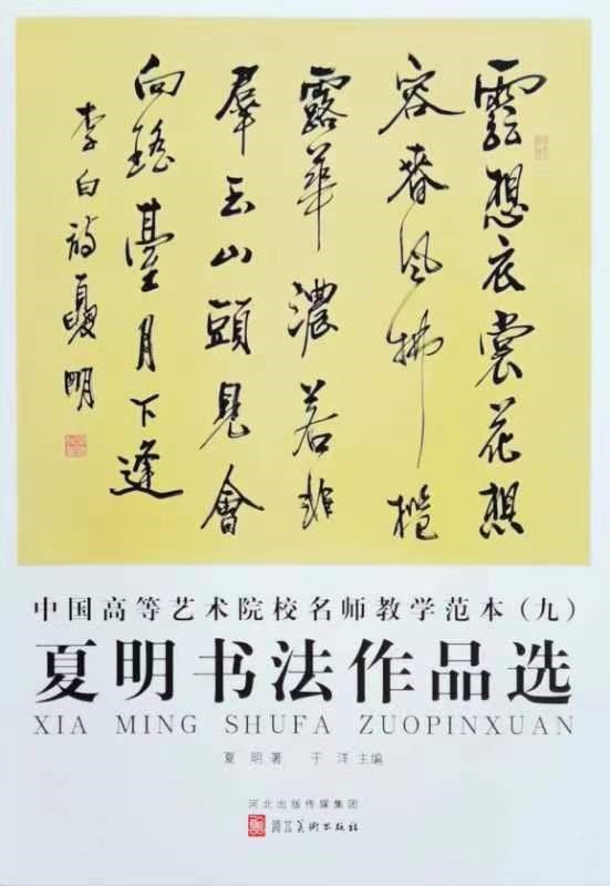 《中国高等艺术院校名师教学范本》系列丛书于近日出版发行,该书精装八开册页,其中收录了以倡导"书法美学"而颇受关注的著名书法家夏明先生代表作品20余幅,独立成册,这些作品兼具不同书体风格,体现了夏明书法独特的创作理念与艺术魅力。