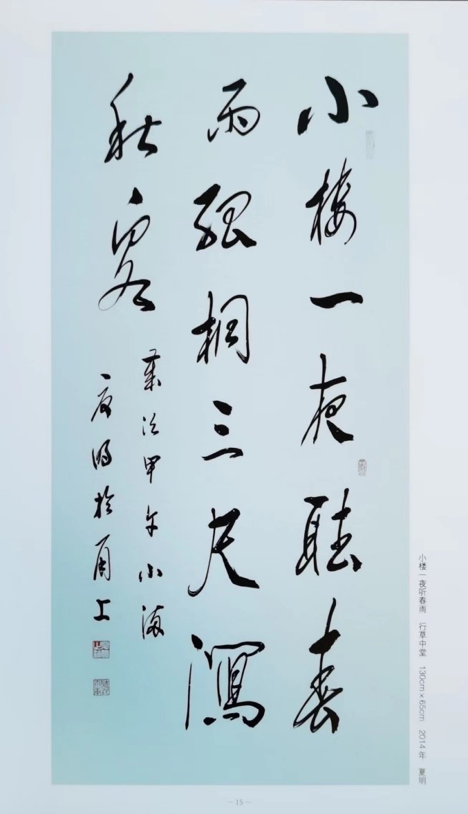 作品先后在中国美术馆、中国国家博物馆及香港、日本、法国、美国等三十多个国家和地区巡展交流,被众多中外藏家、艺术馆博物馆、古刹名寺收藏或勒碑。其代表作品《中国当代名家书法集—夏明》,由国内著名书画品牌“大红袍”连推三版广受赞誉。西泠印社副社长韩天衡先生评价夏明先生的创作,“广采博取,集百家裘而成一家衣”,为“笔墨当随时代”的成功践行者。