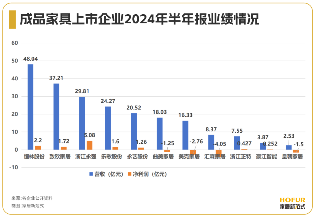 作为出海“主力军”的成品家具上市企业,虽然更早布局海外市场,但在全球经济环境动荡的背景下,整个行业已开始了新一轮的“冷热交替”。家居新范式从2024年半年报来看,头部企业优势继续放大,恒林家居、致欧科技的营收顺利实现增长,稳居第一梯队;曲美家居、永艺股份开始修复利润……不过,从营销费用率角度可知,行业竞争、内卷正在进一步加剧。今年行业还会有哪些“变数”?