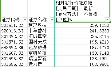 相较之下,截至9月13日收盘,相对发行价涨幅超过200%的只剩下珂玛科技、中草香料、汇成真空。