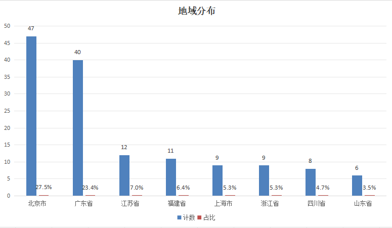 同花顺数据显示,目前A股网络安全概念一共有171家上市公司。从地域分布看,广东省和北京市分别以40家和47家的数量遥遥领先。