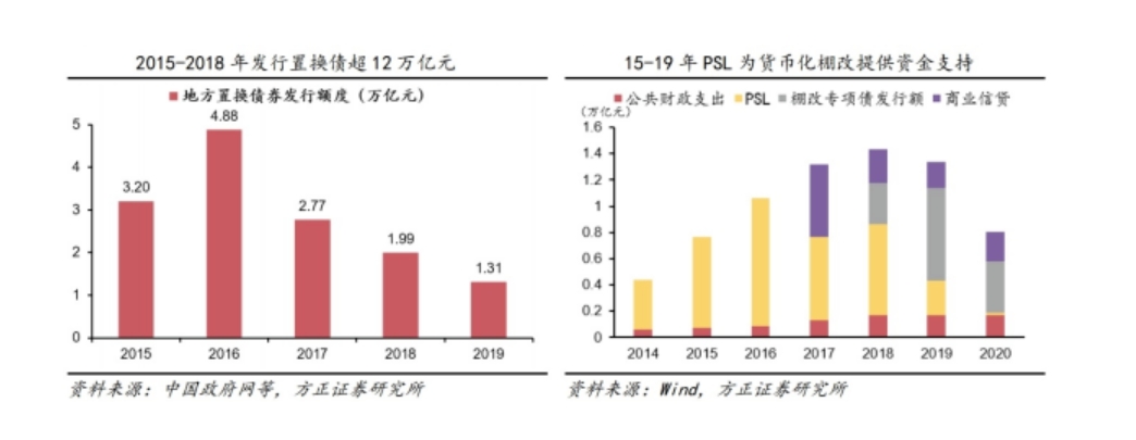 2015年至2019年,央行通过PSL大幅注入流动性,PSL共发放3.27万亿,棚改专项债合计1.03万亿。