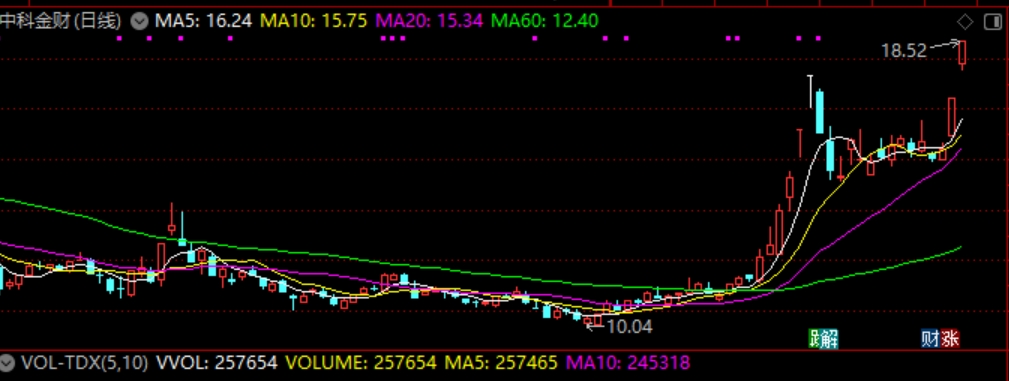 在今天实现上涨的企业当中,科技型企业包括中科金财、宇信科技。其中,中科金财涨停。