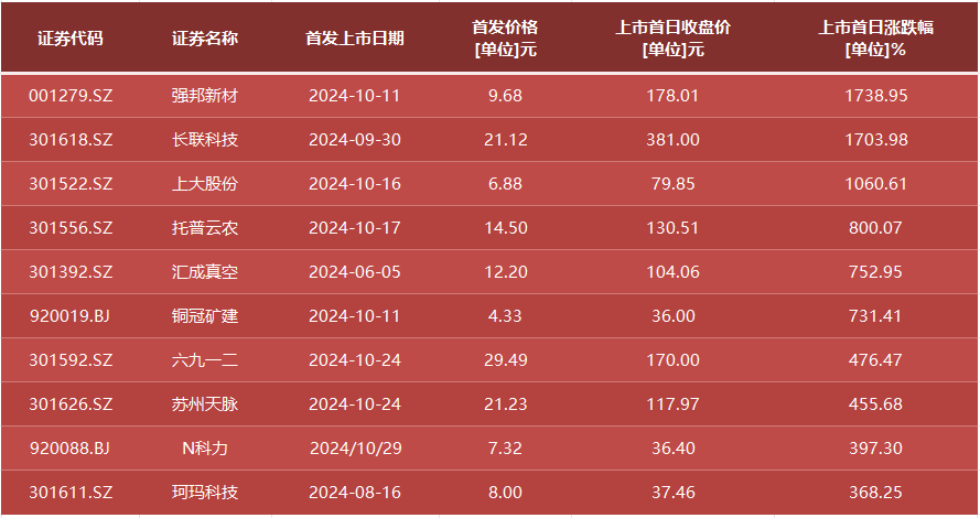 需要注意的是,近期新股由于市场炒作和投资者热情高涨,股价出现非理性上涨。动辄10倍以上的涨幅,不仅偏离了新股的基本面,也加剧了市场的波动性和风险。