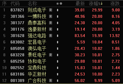 1月9日,PCB概念全线爆发,板块指数大涨4.60%。截至收盘,一博科技、逸豪新材等收获20CM涨停,宏昌电子、景旺电子、协和电子等多只个股实现10CM涨停。