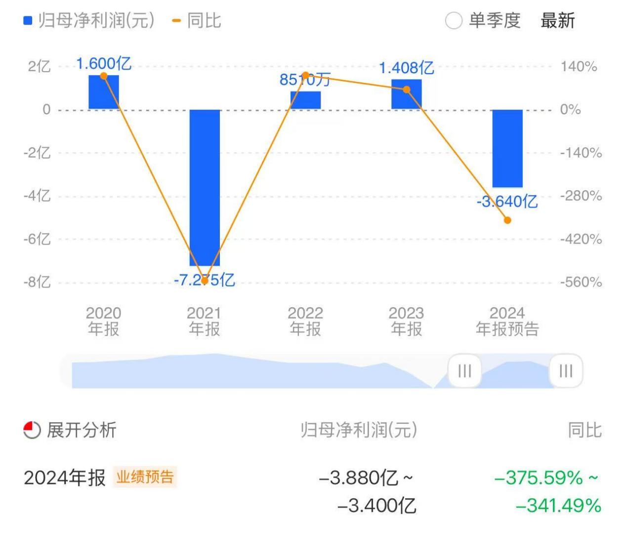然而,单个业务增长并不能成为汇洲智能的“依靠”。根据其刚刚发布的2024全年业绩预测,公司净利润或将亏损34000万元至38800万元,同比减少341.49%至375.59%;扣非净利润或将亏损35000万元至39800万元。