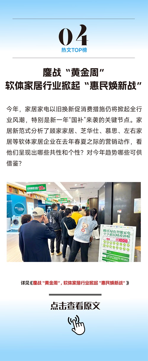 洞察产业新趋势,推动行业新范式。2024年,家居新范式深入一线、直击现场,观察记录、抽丝剥茧,为有幸遇见的家居品牌、整装企业、经销商、设计师等群体,贡献独家新观、数读家居、行业观察、高管洞见、研报之家、一起出海、设计部落、主编探展等一线生态价值信息。