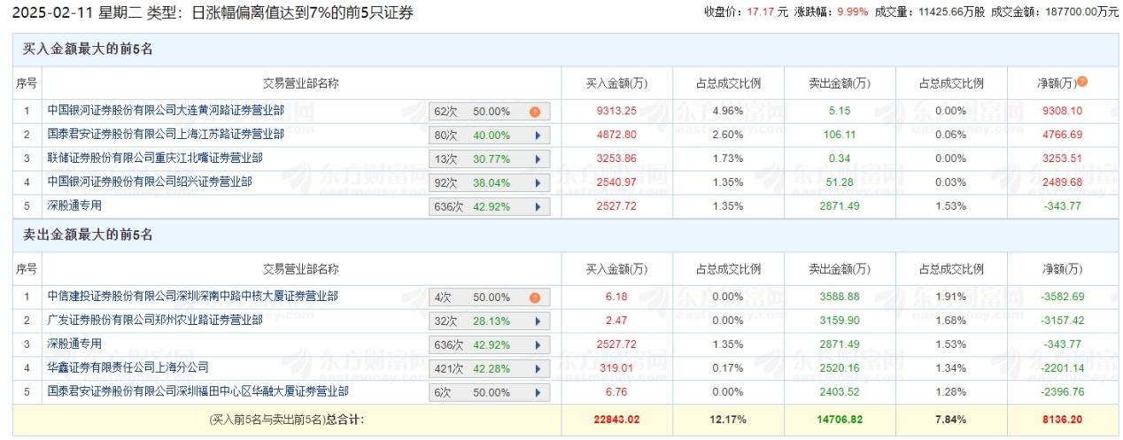 2月11日,梦网科技因日涨幅偏离值达到7%以及连续三个交易日内,涨幅偏离值累计达到20%,两次登上龙虎榜,知名游资陈小群、章盟主、赵老哥现身。