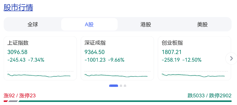 周一(4月7日),A股三大股指低开,A股沪指收盘大跌7.34%,深证成指收盘大跌9.66%,创业板指收盘大跌12.50%,创业板指、北证50指数均创历史最大单日跌幅记录,市场超3000股跌停。消费电子、跨境电商等题材大幅回调。亚太主要股指收盘也全线大跌,日经225指数跌近8%,韩国综合指数跌逾5%。
