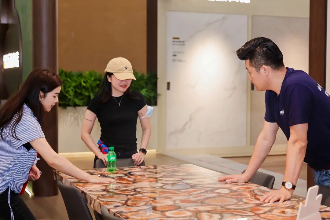对于AI科技给后端生产环节的赋能,简润桐认为目前主要表现在两方面:“一是AI让新的材料、新的技术呈现出不同的迭代,一如汽车自动驾驶,AI设计能够自动纠正生产偏差,让该喷釉的地方喷;二是岩板AI检测方面,从当年的数码检测到现在的AI检测,AI把经验变成了数据,出错率更低,且色彩还原度更高。”