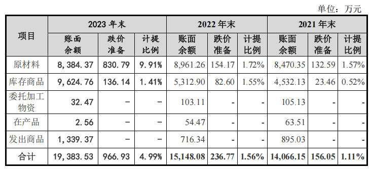 面对存货结构性的变化,华新精科的存货跌价准备计提政策却没有相应变化,依然予以较低比例的计提。2022年和2023年,华新精科对库存商品计提比例基本维持在1.5%左右。