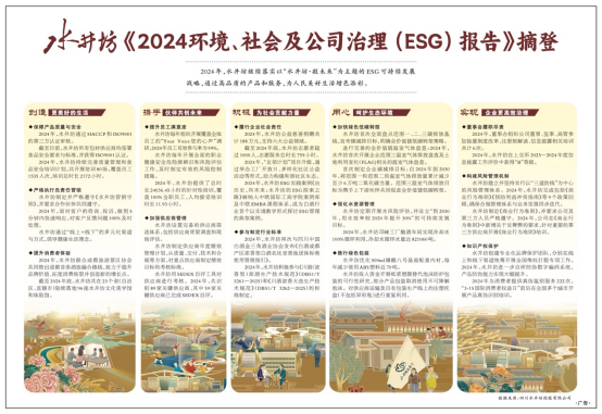 2024年,水井坊继续落实以“水井坊·敬未来”为主题的ESG可持续发展战略,通过高品质的产品和服务,为人民美好生活增色添彩。