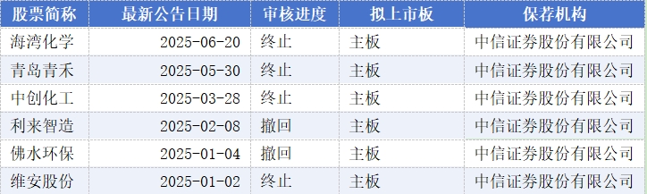中信证券项目企业包括海湾化学、青岛青禾、中创化工、利来智造、佛水环保、维安股份。