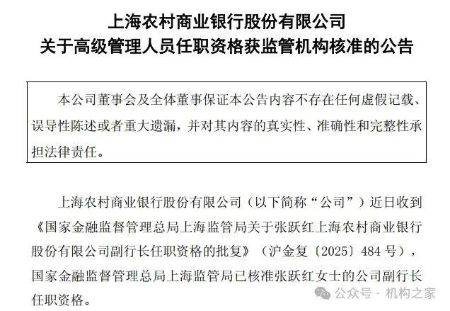 8月6日晚间,沪农商行发布公告,国家金融监督管理总局上海监管局已核准张跃红该行副行长任职资格。这位深耕对公领域多年的银行老将,从基层一步步走来,如今跻身核心高管层,她的上任能否为沪农商行带来新的发展契机,亦或面临诸多挑战,值得深入探讨。