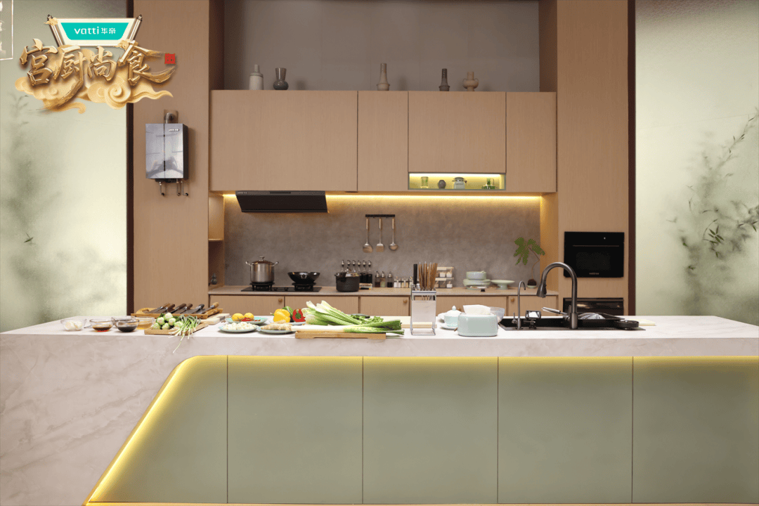 华帝将宫廷美学与现代厨房需求融合,致力于从功能布局到厨电,全面打造出可落地、可复制的新中式厨房范本。