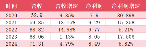 再来看增速,2020年至2024年之间的增速分别为9.35%、13.15%、14.98%、1.13%、4.79%。