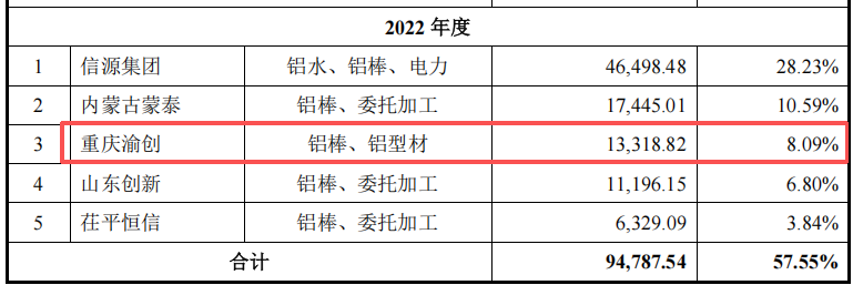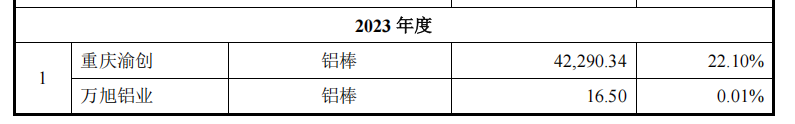 其中,2023年,友升股份将重庆渝创与万旭铝业一起放在了第一大供应商列表中,二者共计采购金额为42306.84万元。