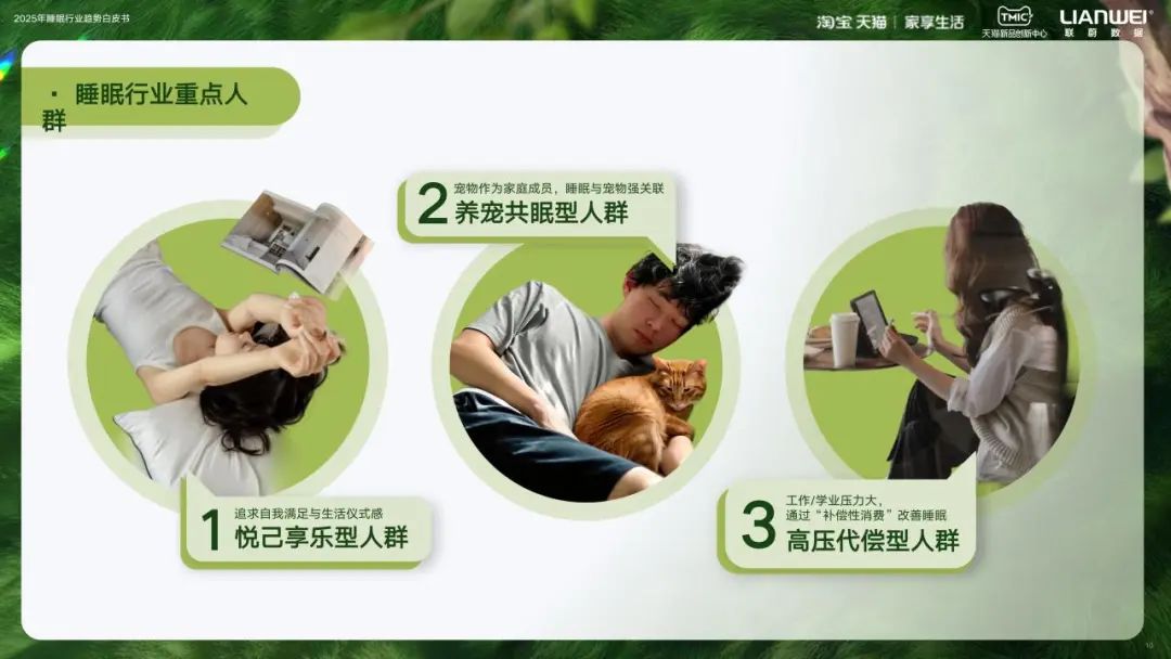 报告还将睡眠经济的重点人群划分为六大群体,分别覆盖新锐女性、爱宠人士、都市白领、有娃一族、养生人群、商务群体等。关于睡眠消费主力人群的详细调研、数据及分析详见《研报之家丨五大消费势力画像、三大赛道爆发点……看家纺行业的深度修复版图》。