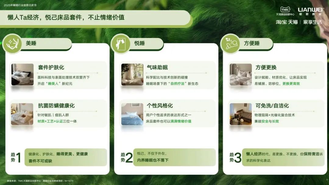 在快节奏与高压力的现代生活中,睡眠这一生理刚需正变得愈发重要。不仅要睡够,更要睡“好”,成为消费者的核心诉求。家纺产业作为睡眠场景的核心载体,也正通过技术创新和生态协同,深度挖掘多样化场景,为行业的创新增长注入强劲动力。本期家居新范式带您解析《2025天猫家纺趋势白皮书》,探秘睡眠经济浪潮下家纺消费的新趋势。