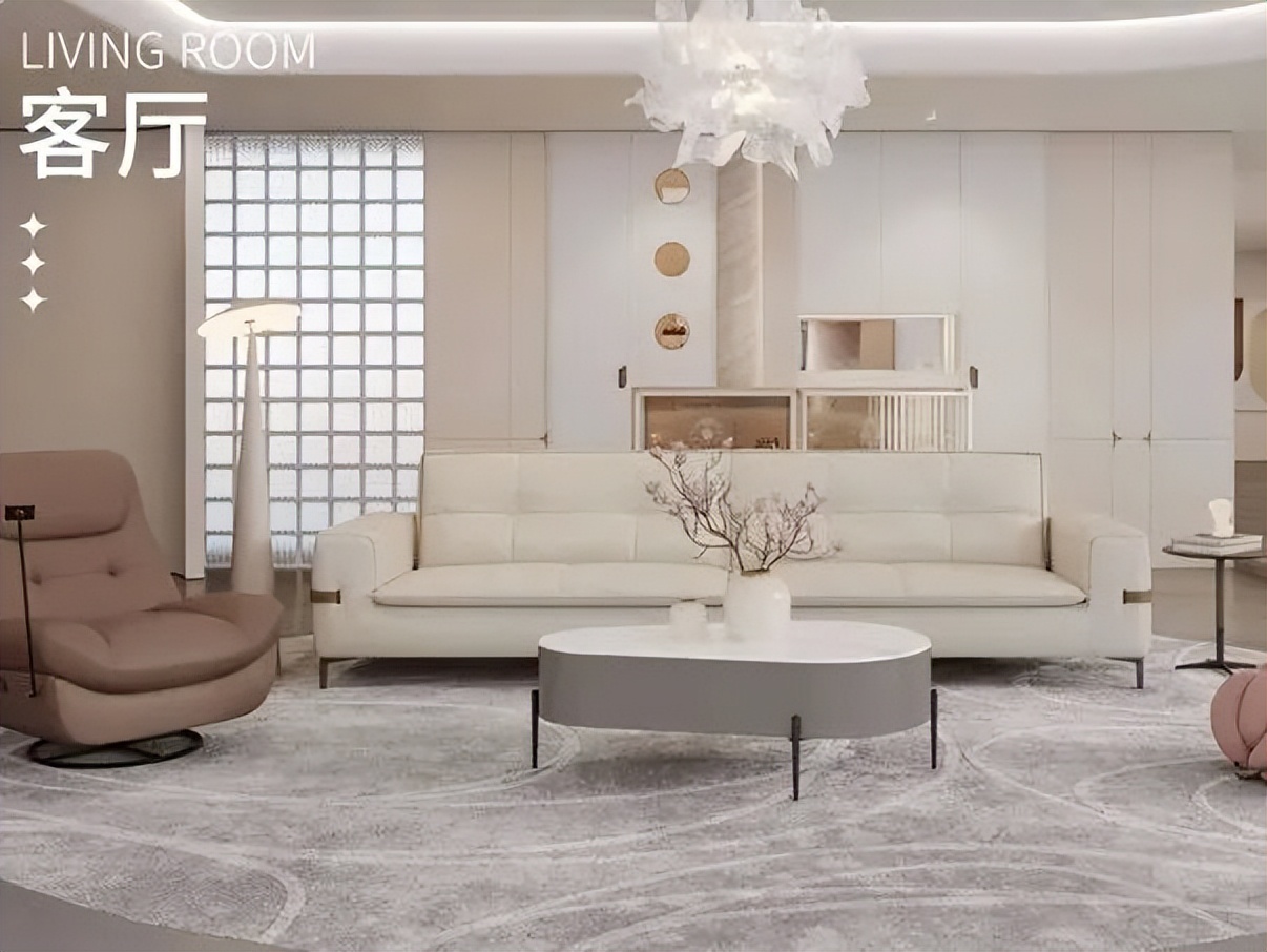 设立理念:以温馨奶油色系为主调,采用优质猫抓皮、高档头层牛皮、高品质岩板等高端材质,营造时尚、自然、松弛治愈的当代年轻生活方式。