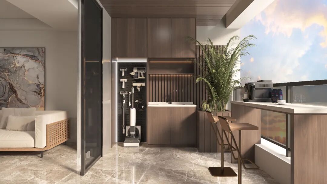 空间维度:添可提供全隐式(前瞻规划)与半隐式(灵活适配)两种方案。以芙万K3全场景清洁中心为例,其洗地机的基站拥有自动加水、排污、热水自清洁、高温全链速干等8大功能,占地仅0.1㎡,完美嵌入家居,和谐共生;其设计语言源于“天圆地方”的东方智慧,堪称家居艺术品,采用半隐式安装能适配更多户型与装修风格,演绎独特的和谐之道。