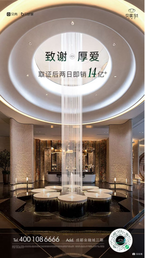 上周,成都高端住宅市场迎来一场"现象级热销"。据开发企业公布数据显示,金融城三期顶豪项目——金融城·贝宸S1上周五正式取证入市,在周末短短两天时间内,实现了两天销售金额突破14亿的成绩,若以均价6万+、套均总价2000万元计算,去化率约六成。在当下的房产市场中划出一道逆势上扬的曲线,成为当之无愧的焦点。