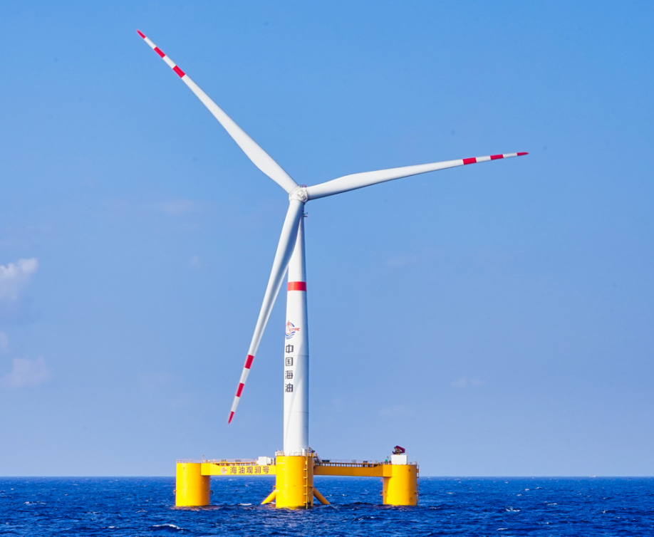 (图为中国首个深远海浮式风电平台“海油观澜号”)