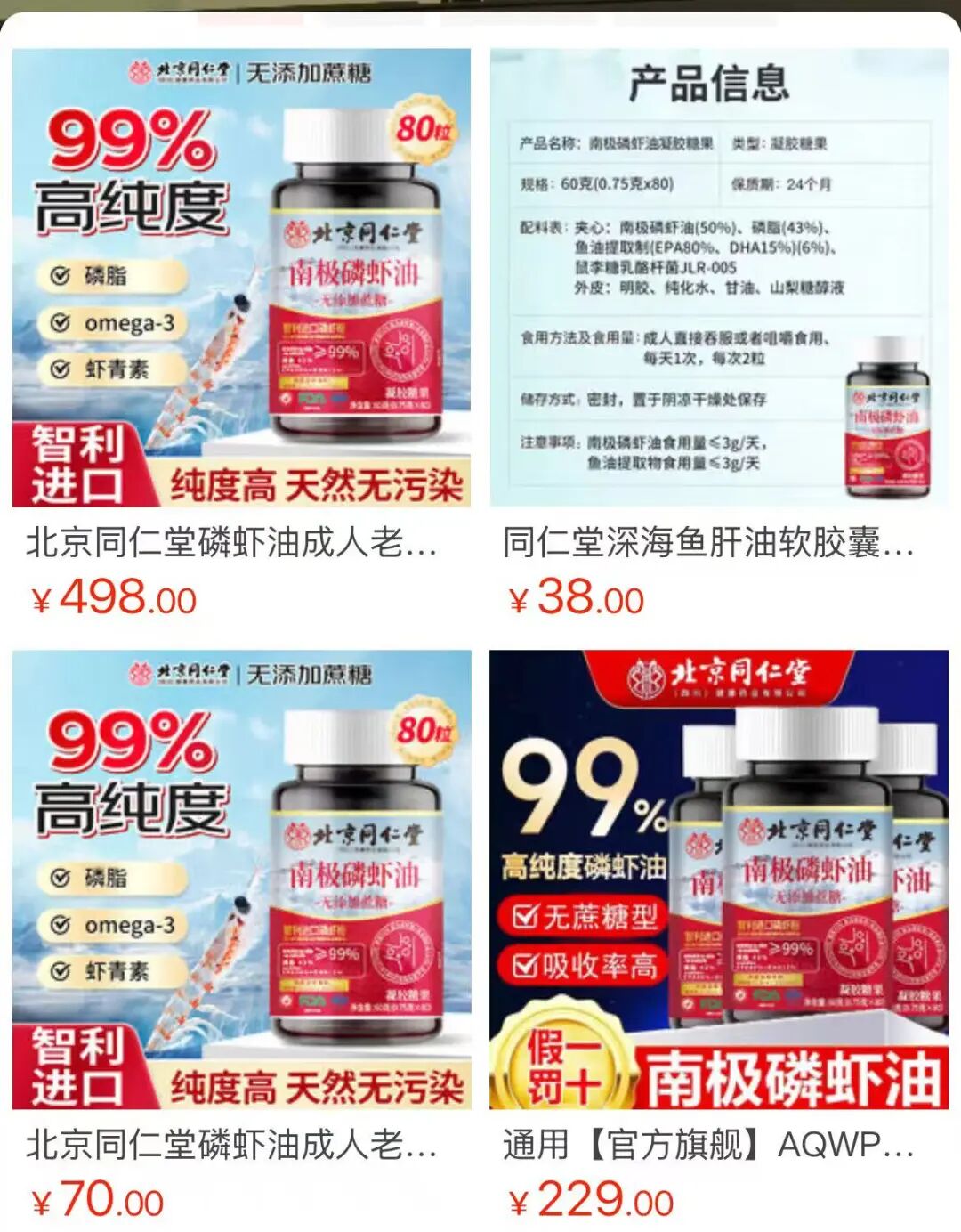 文轩财经打开部分电商平台发现,这款北京同仁堂99%高纯南极磷虾油主页几乎已经没有相同包装规格的产品在线销售,或已做了下架处理。搜索主页更多是与这款南极磷虾油产品外包装相似的同类竞品。