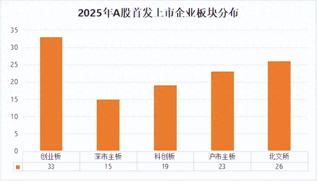 从板块分布来看,多层次资本市场的差异化定位进一步凸显,各板块上市节奏分化显著。创业板凭借33家的新增上市企业数量领跑全场,成为创新创业企业登陆资本市场的核心阵地;北交所紧随其后,贡献26家上市企业,在服务专精特新中小企业方面的作用持续显现;沪市主板、科创板、深市主板分别新增23家、19家、15家企业,主板的大盘蓝筹集聚效应与科创板的硬科技属性形成互补,共同构筑起层次分明的市场体系。