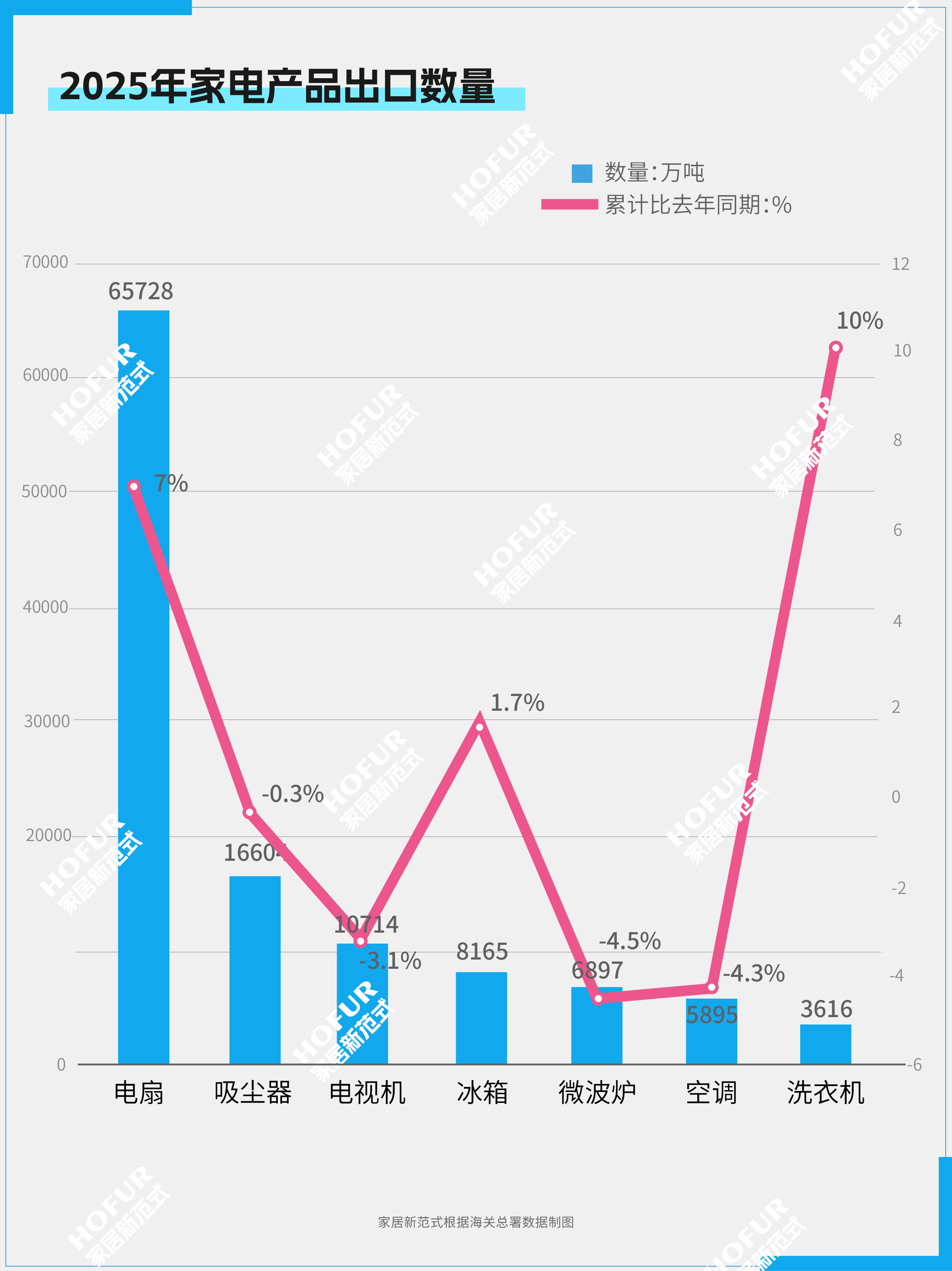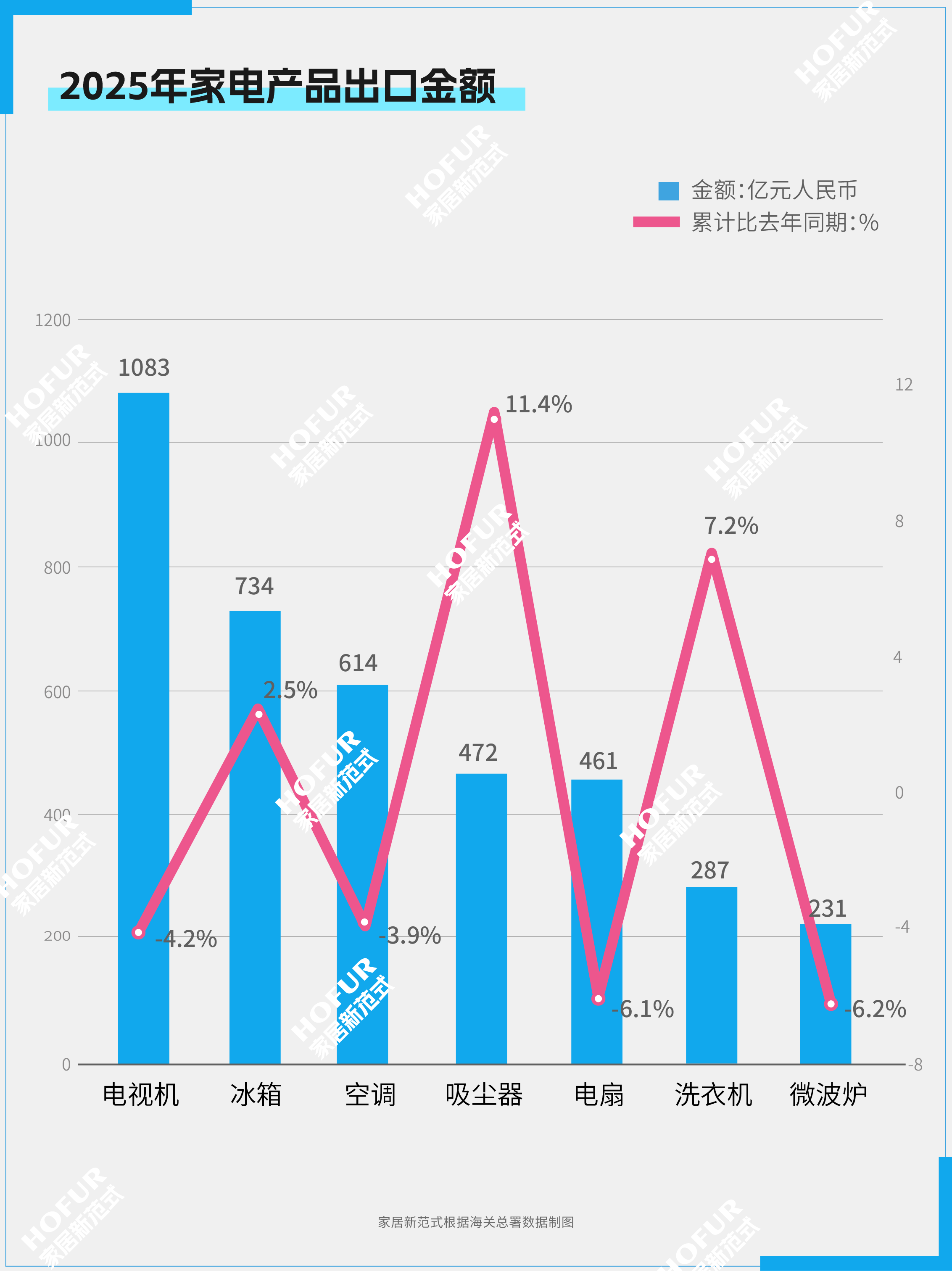 家电📺、家具🛋️、灯具💡、建筑陶瓷🪨的出口额分别下降3.3%、5.6%、11.9%、3.5%;