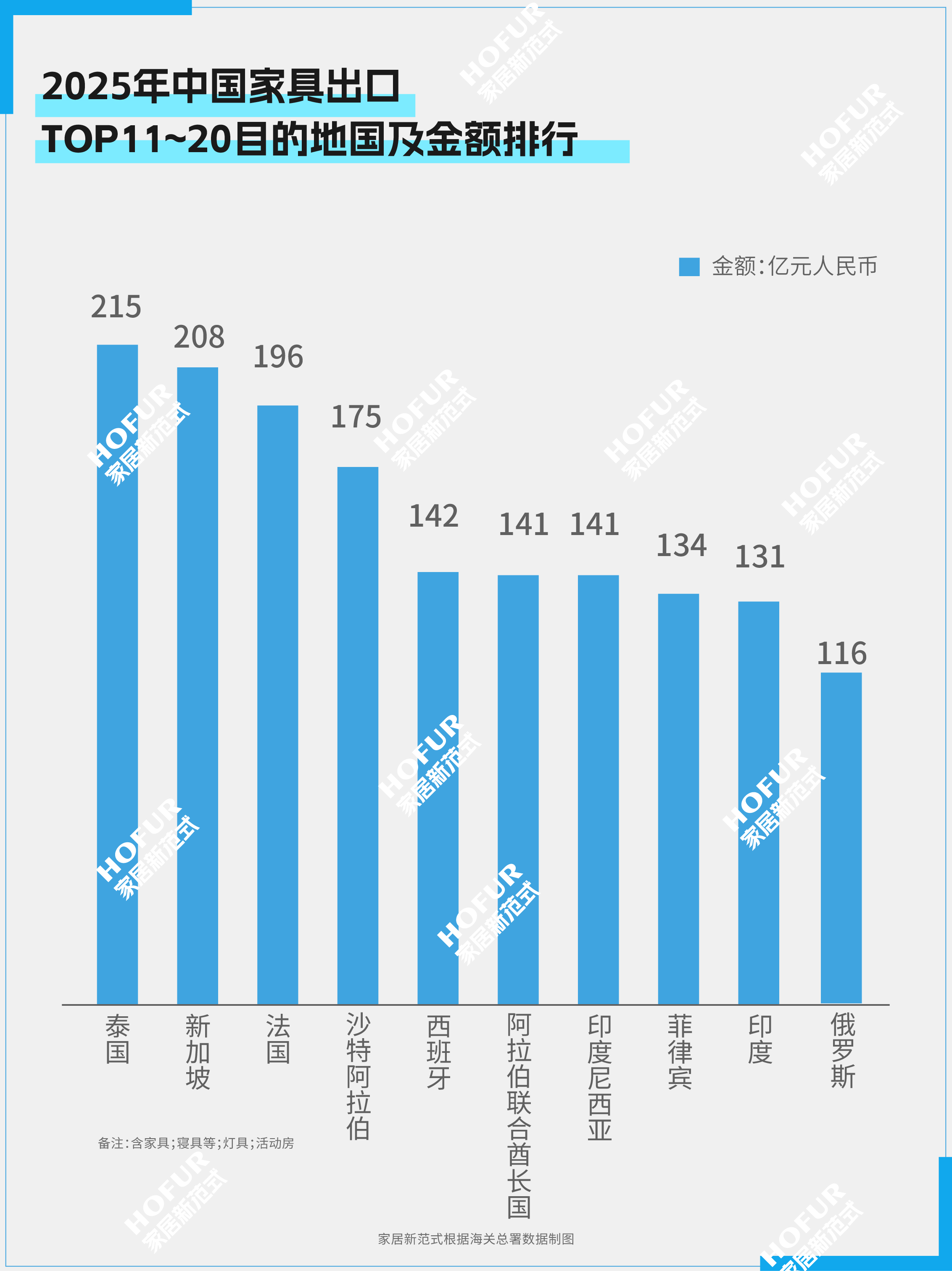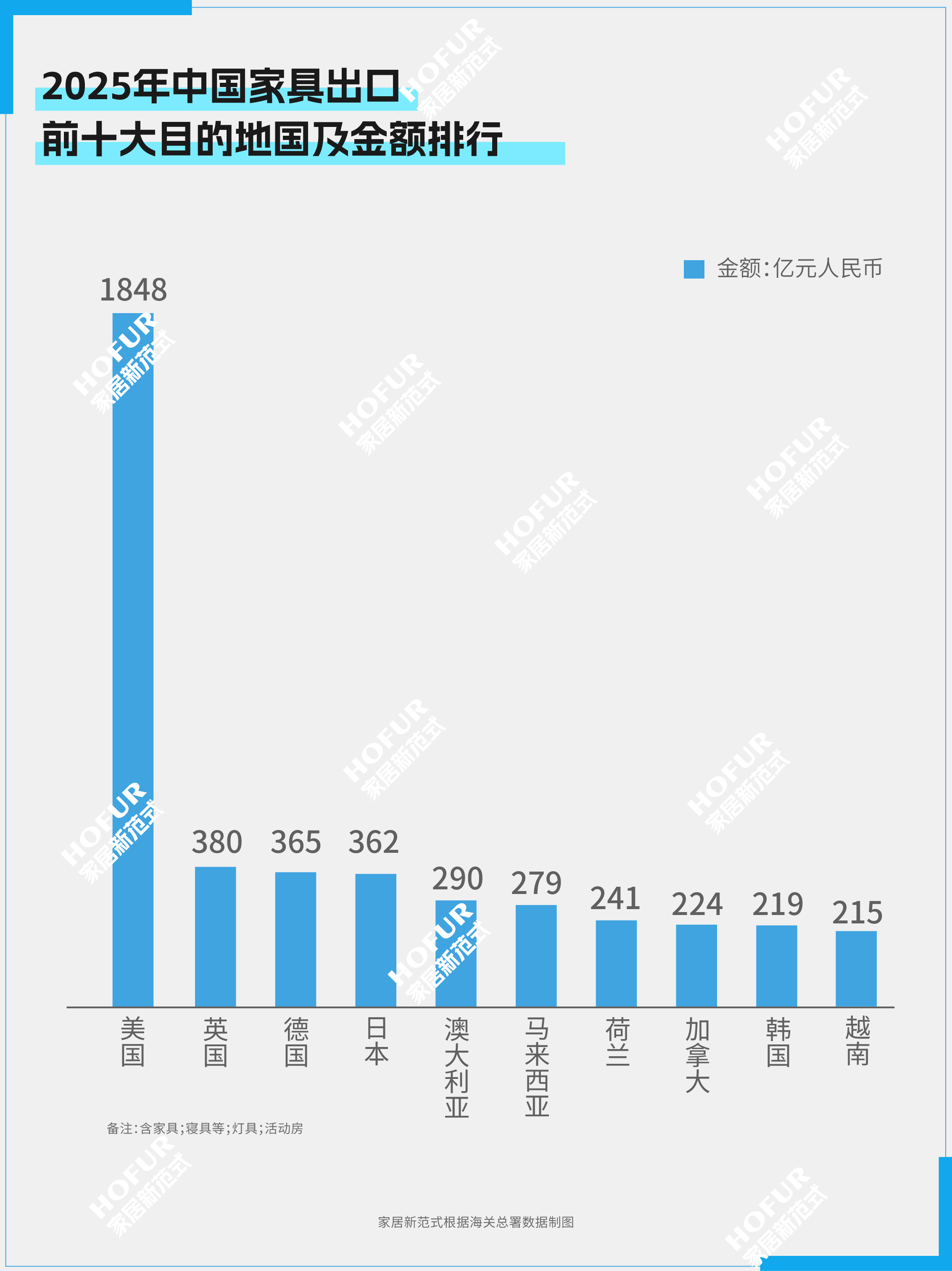 前十大家具出口目的国里,欧盟金额已逼近美国;