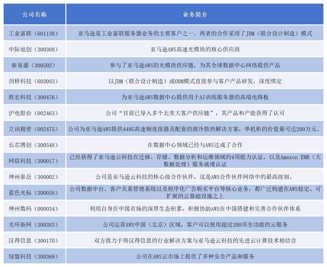 亚马逊概念股梳理