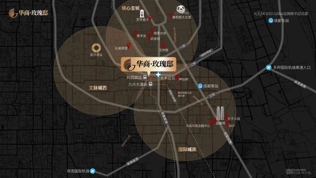 以华商·玫瑰邸为例,项目地处南二环,这里是成都当之无愧的核心。