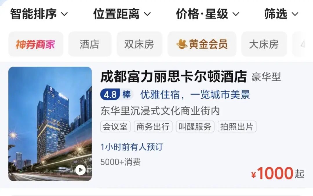 由于其基础房型价格时常跌破1000元大关,在动辄每晚两三千元的同级奢华酒店中,它成了不少普通消费者“薅羊毛”的首选。