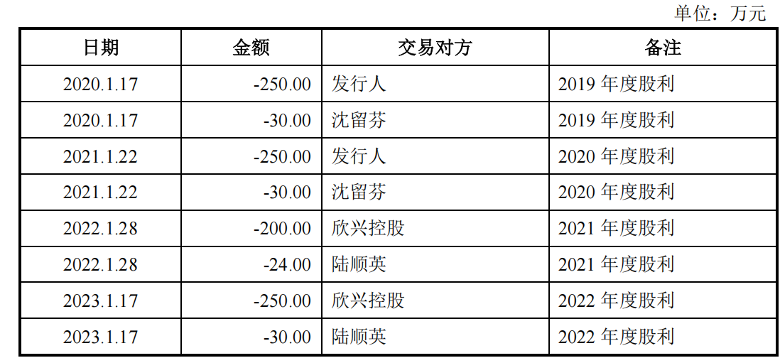 《奕泽财经》还注意到,欣兴小贷的自然人股东吴月生持有10%股份,而吴月生也是欣兴工具大客户海盐三环进出口的实控人。2020年至2023年,欣兴小贷每年至少向吴月生发放股利100万元。与此同时,《奕泽财经》还注意到,欣兴小贷其他多个自然人股东名下均拥有对外贸易企业,这些企业是否是欣兴工具的客户呢?由朱氏家族掌控的欣兴小贷是否沦为了向欣兴工具向客户输送利益的“影子平台”呢?