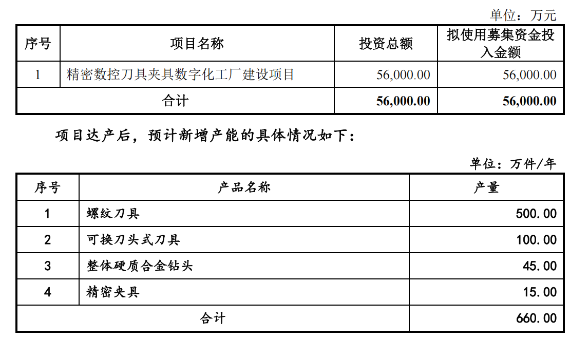 另外,两年之前,欣兴工具计划将募集资金用于扩充螺纹刀具500万件/年、硬质合金钻头产能扩充100万件/年,如今,该募投计划再次被“摆在”投资者面前。