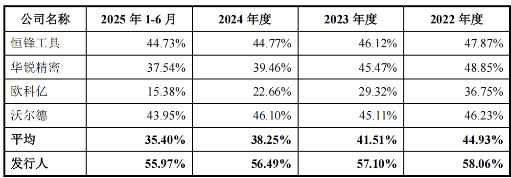 《招股书》显示,在各报告期,欣兴工具毛利率分别为58.06%、57.10%、56.49%及 55.97%,平均毛利率57%以上,逼近60%。