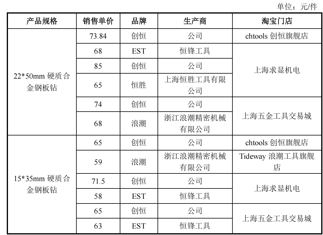 图 8 欣兴工具产品定价与同行比较(来源:回复文件)