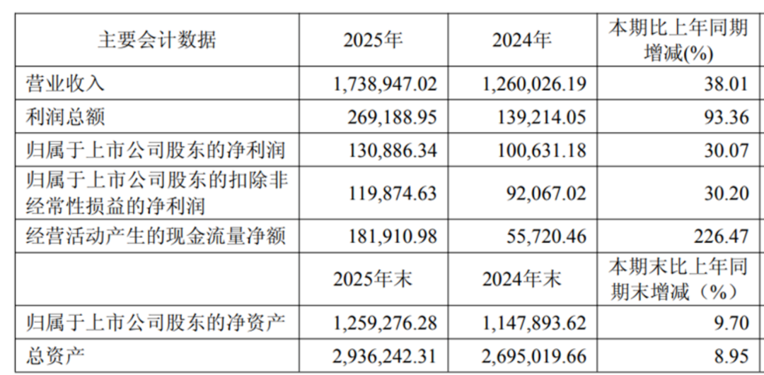 科达制造(600499)3月27日晚间发布的2025年年度报告显示,公司全年经营业绩创下历史新高。报告期内,公司实现营业收入173.89亿元,同比增长38.01%;实现归属于上市公司股东的净利润13.09亿元,同比增长30.07%;扣非后归母净利润11.99亿元,同比增长30.20%。公司经营活动产生的现金流量净额达18.19亿元,同比大幅增长226.47%。