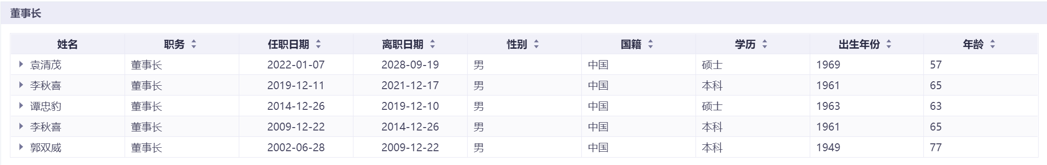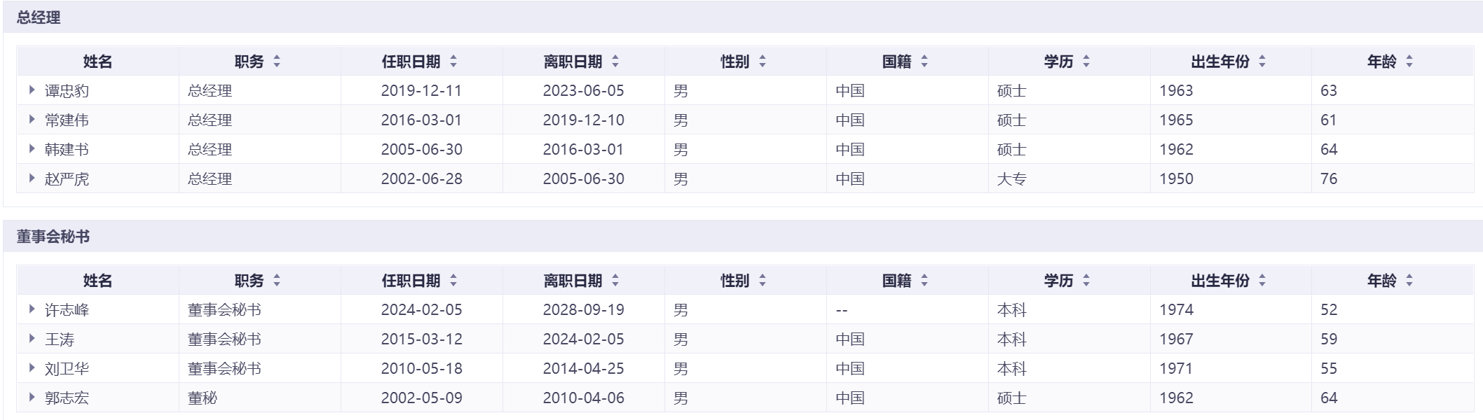 贵州茅台现任管理层以及历届变动情况