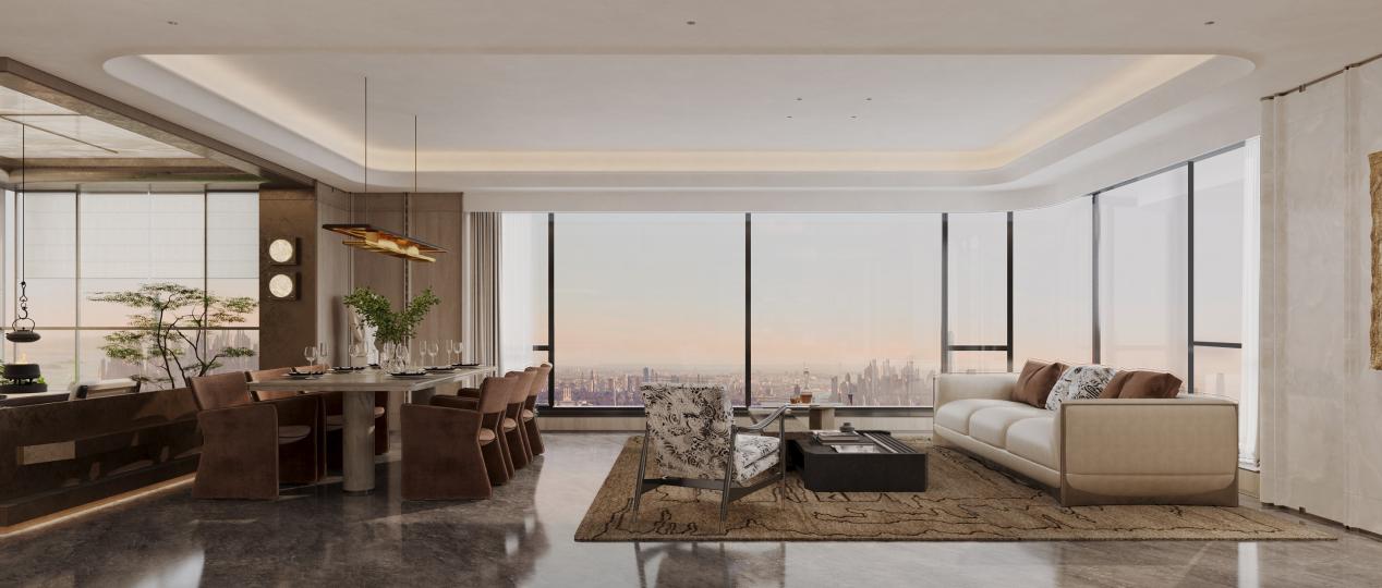 更在产品形态上系统性创新。建面约143-225㎡的“无界空中墅”序列,通过“功能、庭院、互动、可变”四大维度协同,实现空间体验的质变。约143㎡户型可打造约9.1米开间的家庭聚场,约185㎡户型LDKG无界巨厅的社交想象,约225㎡空中墅270°环幕视野与四重花园的云端栖居,都是对家庭关系与精神世界的深度回应。