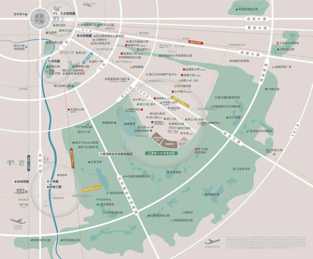 教育方面,成都三幼、成师附小驸马校区、七中育才梅香湖校区等品质学校齐聚,以及配套高中的规划,涵盖从幼儿园到高中的多学段教育资源;(仅供参考,不作为入学依据,具体以当年教育部门划片为准)