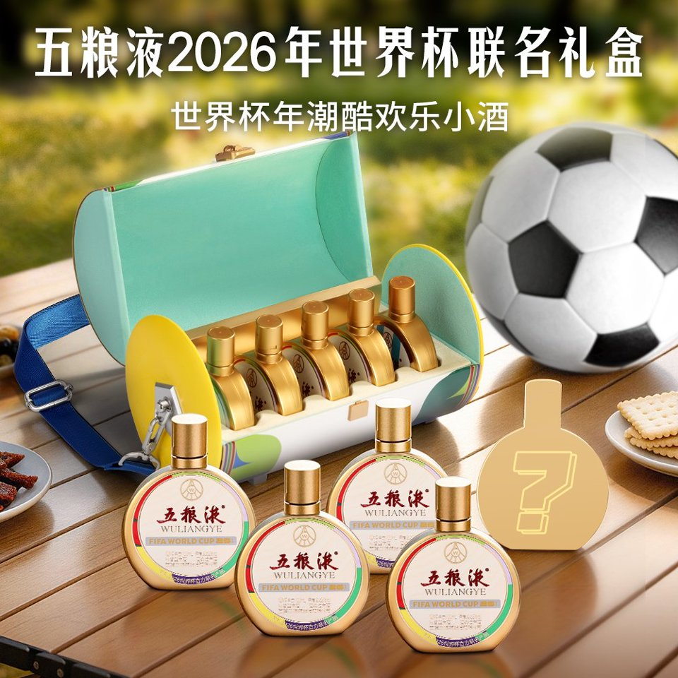 而在距离揭幕战不足两个月的时候,中国白酒龙头五粮液接连打出两记“重拳”:先是重磅上线“猜世界杯冠军,赢五粮液千万奖金”主题活动,以1000万元现金奖池吸引全民参与;紧接着,又推出五粮液美加墨世界杯胜利小酒礼盒,以全球独家首发的姿态,率先在山姆会员商店上架,为这场足球盛宴再添一把火。