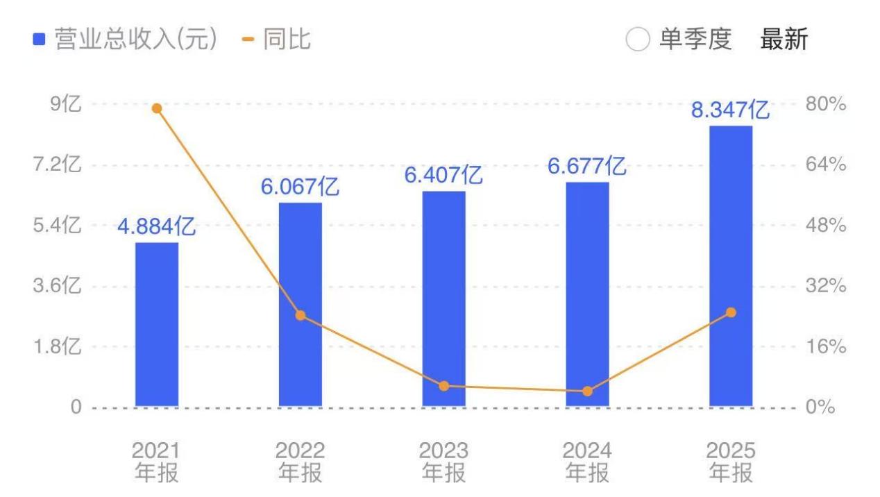 4月24日,祥和实业(603500.SH)发布2025年业绩报告,报告显示,2025年公司实现营收8.35亿元,同比增长25.01%;实现净利润1.34亿元,同比大幅增长78.31%。