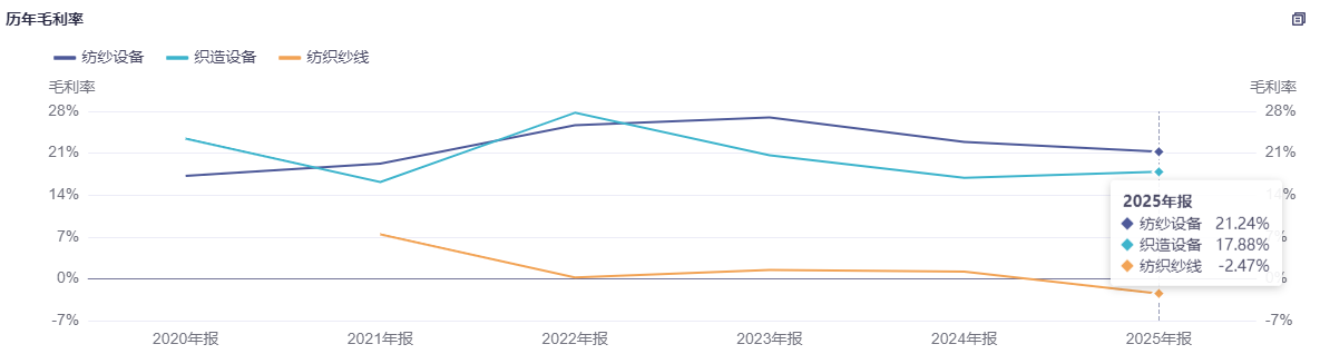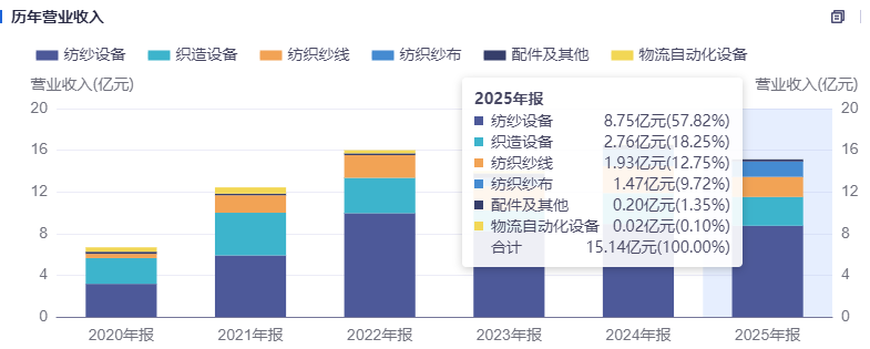 境内市场收缩时,境外业务成为重要缓冲。2025年公司境外收入同比增长超三成,转杯纺纱机、剑杆织机、喷气织机出口强劲,在“一带一路”沿线与新兴市场打开空间,有效对冲了国内下行压力。这种“国内打底、海外增量”的格局,让它在行业寒冬里,守住了基本盘。